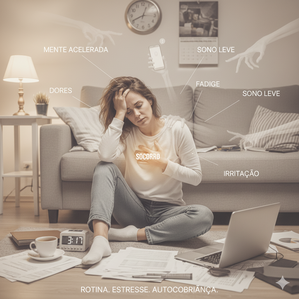 É o corpo tentando equilibrar o que a rotina, o estresse e o excesso de auto-cobrança desorganizaram.